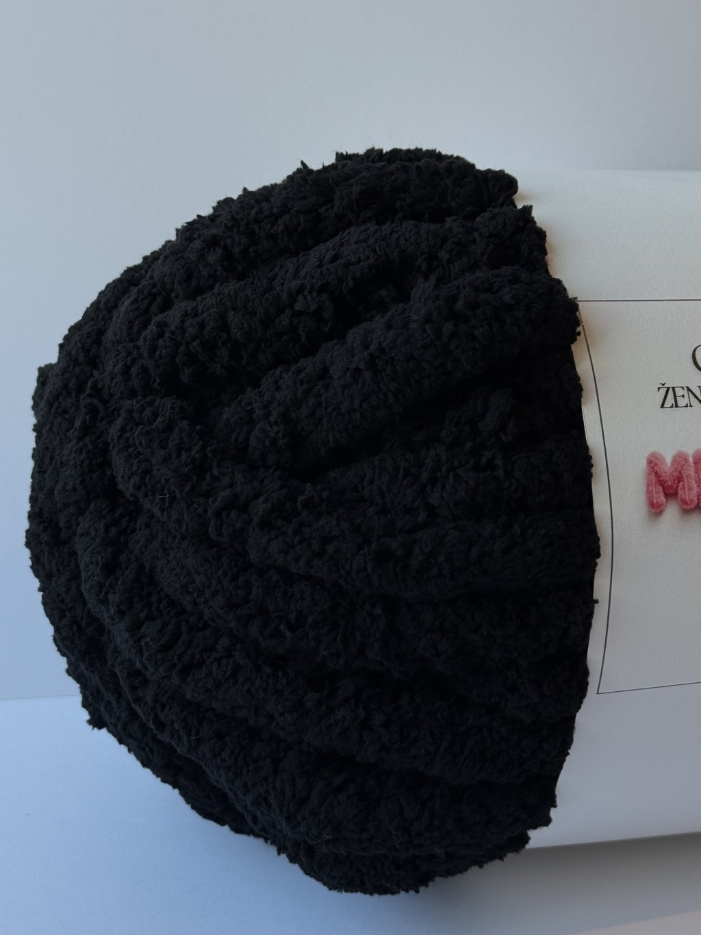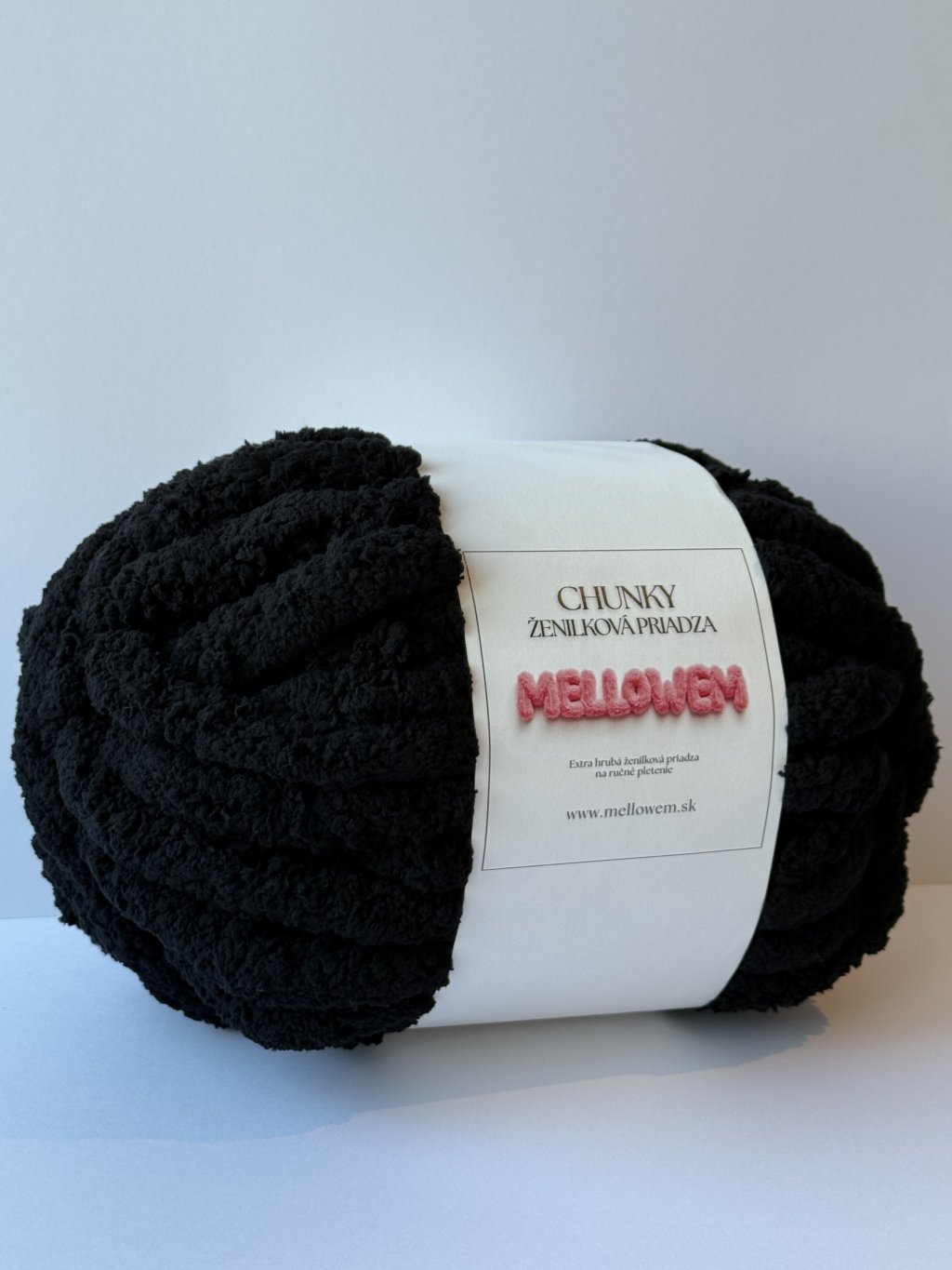 Chunky extra hrubá ženilková priadza čiernej farby určená na ručné pletenie. Je veľmi mäkká, nadýchaná a príjemná na dotyk. Vďaka svojej hrúbke umožňuje rýchlu a jednoduchú prácu. Výsledné výrobky sú objemné, hrejivé a pôsobia nadýchane.