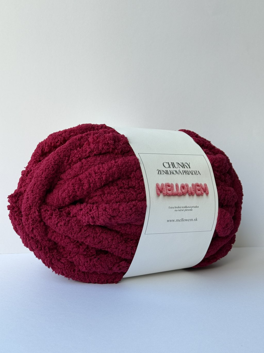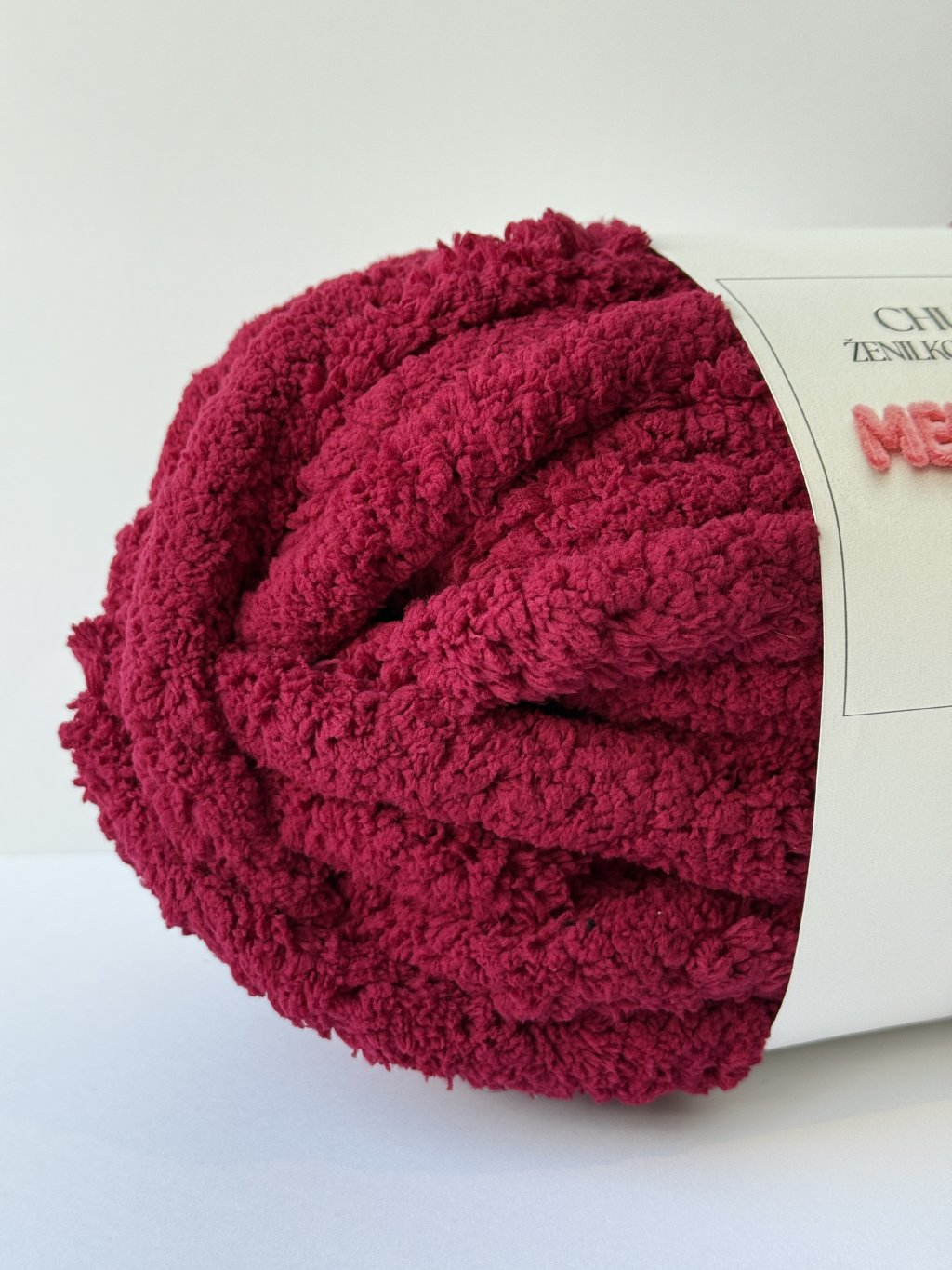 Chunky extra hrubá ženilková priadza cviklovej farby určená na ručné pletenie. Je veľmi mäkká, nadýchaná a príjemná na dotyk. Vďaka svojej hrúbke umožňuje rýchlu a jednoduchú prácu. Výsledné výrobky sú objemné, hrejivé a pôsobia nadýchane.