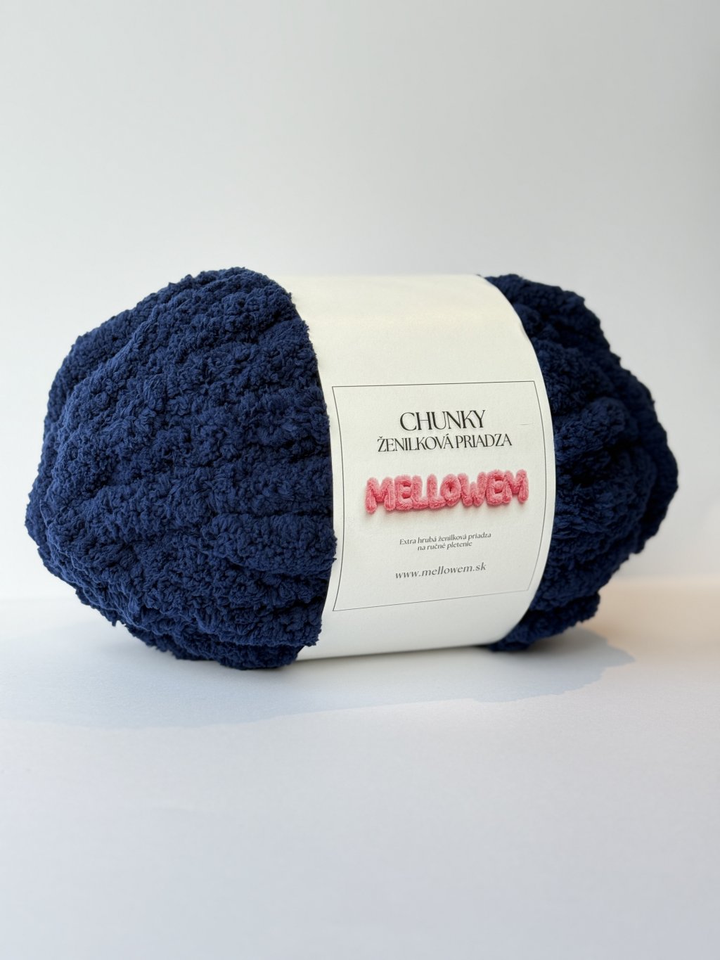 Chunky extra hrubá ženilková priadza námorníckej modrej farby určená na ručné pletenie. Je veľmi mäkká, nadýchaná a príjemná na dotyk. Vďaka svojej hrúbke umožňuje rýchlu a jednoduchú prácu. Výsledné výrobky sú objemné, hrejivé a pôsobia nadýchane.