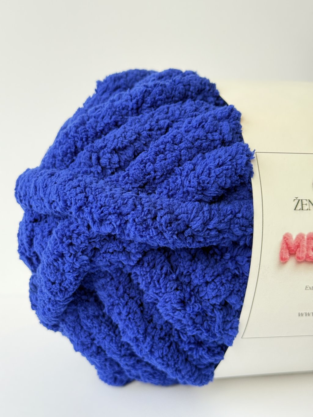 Chunky extra hrubá ženilková priadza tmavomodrej farby určená na ručné pletenie. Je veľmi mäkká, nadýchaná a príjemná na dotyk. Vďaka svojej hrúbke umožňuje rýchlu a jednoduchú prácu. Výsledné výrobky sú objemné, hrejivé a pôsobia nadýchane.